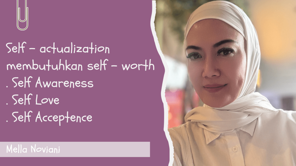 Saya merangkum bahwa pencapaian atau aktualisasi diri ini adalah proses yang harus melewati self worth yaitu self awareness, self love dan self acceptance dengan baik sehingga dapat mencapai self actualization atau aktualisasi diri.